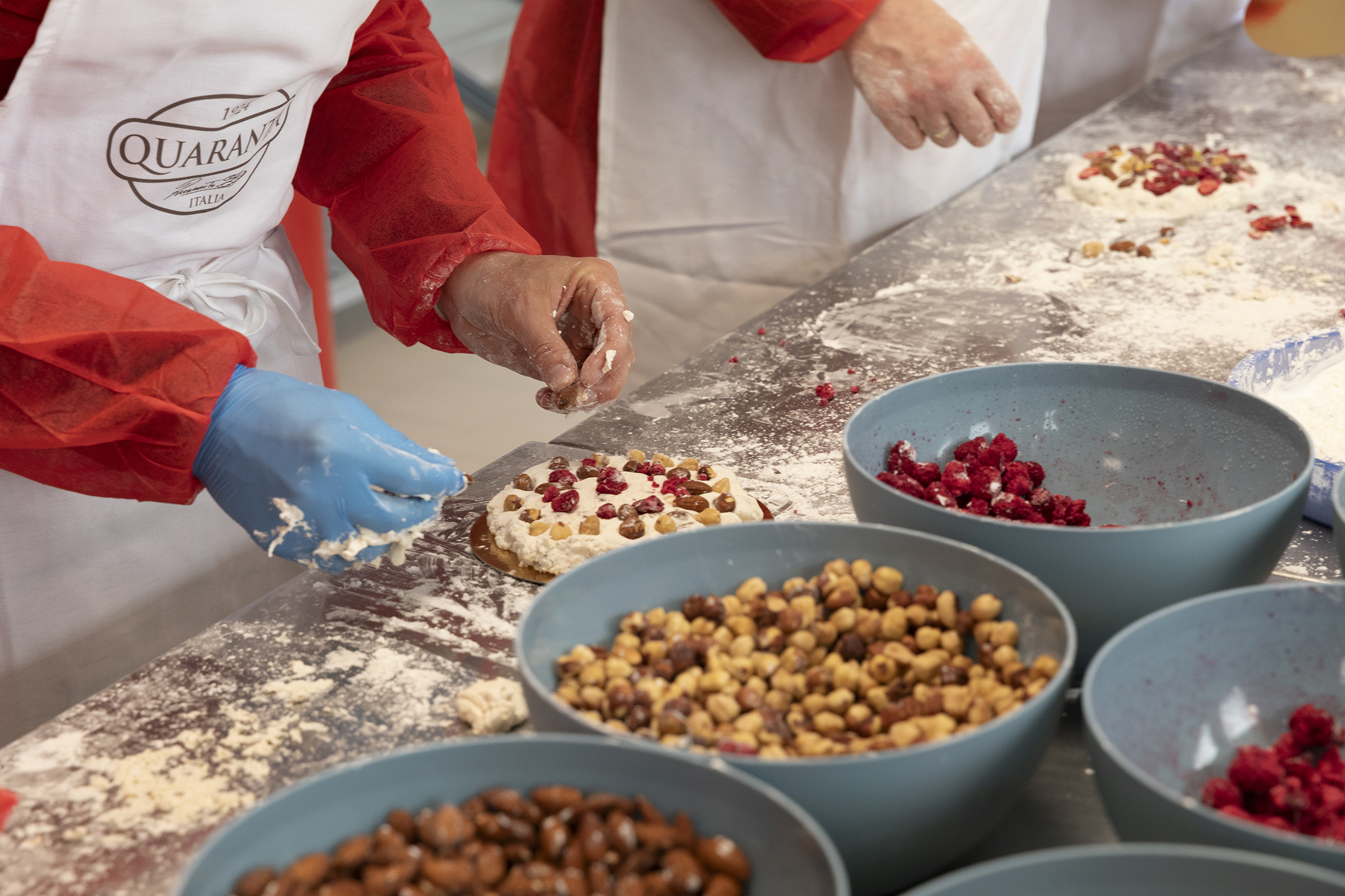 The story of the Quaranta family’s nougat begins in Caravaggio in 1924, birthplace of the famous painter Michelangelo Merisi, known as “Il Caravaggio”. The founder Antonio Quaranta, together with his wife Alzira, was a passionate artisanal producer of typical traditional Italian nougat and other typical, traditional sweets including, brittle and caramelized nuts. A small laboratory in the heart of Caravaggio was the place that gave birth to the recipe book reporting precise details on amounts and ingredients, some of which are still used in production nowadays: after 100 years, our original "White nougat 101" almond soft nougat’s recipe has never changed.